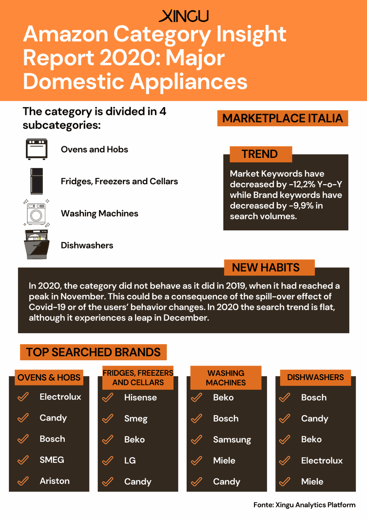 Mercoledì 11 Maggio si è svolta la seconda puntata di Xingu Talks, il nuovo ciclo di Fireside Chat organizzato da noi di Xingu per poterci confrontare con i top brand sulle tematiche relative al mondo Amazon. Per questo appuntamento abbiamo coinvolto come ospite Carlo Antonelli, Accounts International Manager di Haier Europe, nostro cliente e vendor con una presenza ormai consolidata sul marketplace, per discutere dei risultati presentati nel nostro Amazon Insight Report 2020 per la categoria Major Domestic Appliances, che vede il brand del gruppo Candy sempre presente tra i brand più ricercati dagli utenti nel 2020 per ciascuna sottocategoria. Vediamo quindi gli highlights e gli spunti più interessanti che sono emersi dalla Fireside Chat.